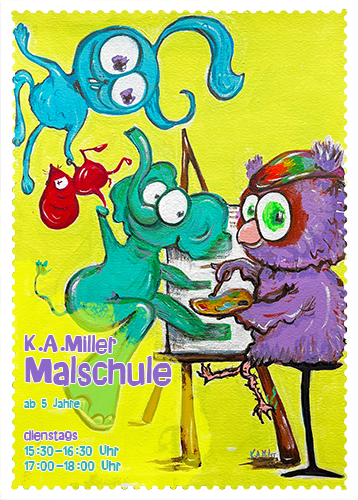Von einer professionellen Illustratorin und Medienpädagogin K.A. Miller (mir) erlernen wir in der Malschule gemeinsam verschiedene Mal – und Kunsttechniken. Natürlich bleibt es nicht nur beim Malen, mit Malschule ist viel zu wenig gesagt, um das zu beschreiben, was wir mit den Kindern pädagogisch und künstlerisch umsetzen werden.