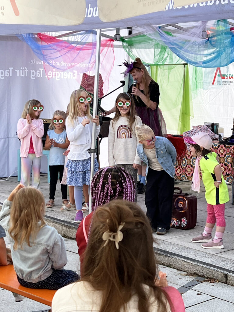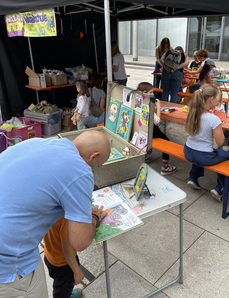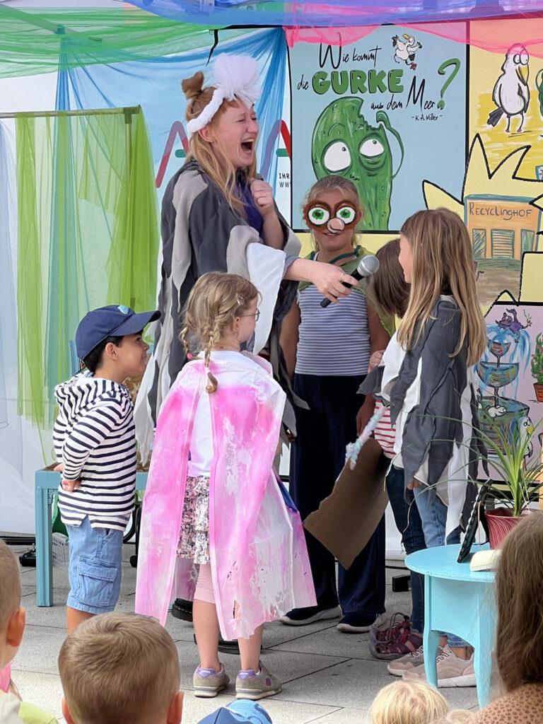 Am letzen Augustwochenende (30.08-31.08.2025) haben wir in Kooperation mit der Stadtwerke Aschaffenburg (vielen Dank für die tolle Zusammenarbeit!) den Theaterplatz ganz schön bunt aufgemischt. Wir haben Theater gespielt, in Kostümen performt, zur Musik getanzt, die Wichtigkeit des Recyclings eruiert, sind in verschiedene Länder gereist, und außerdem mit unserer Malschule wahnsinnig tolle Abcyclingkunstwerke erschaffen. Wow!